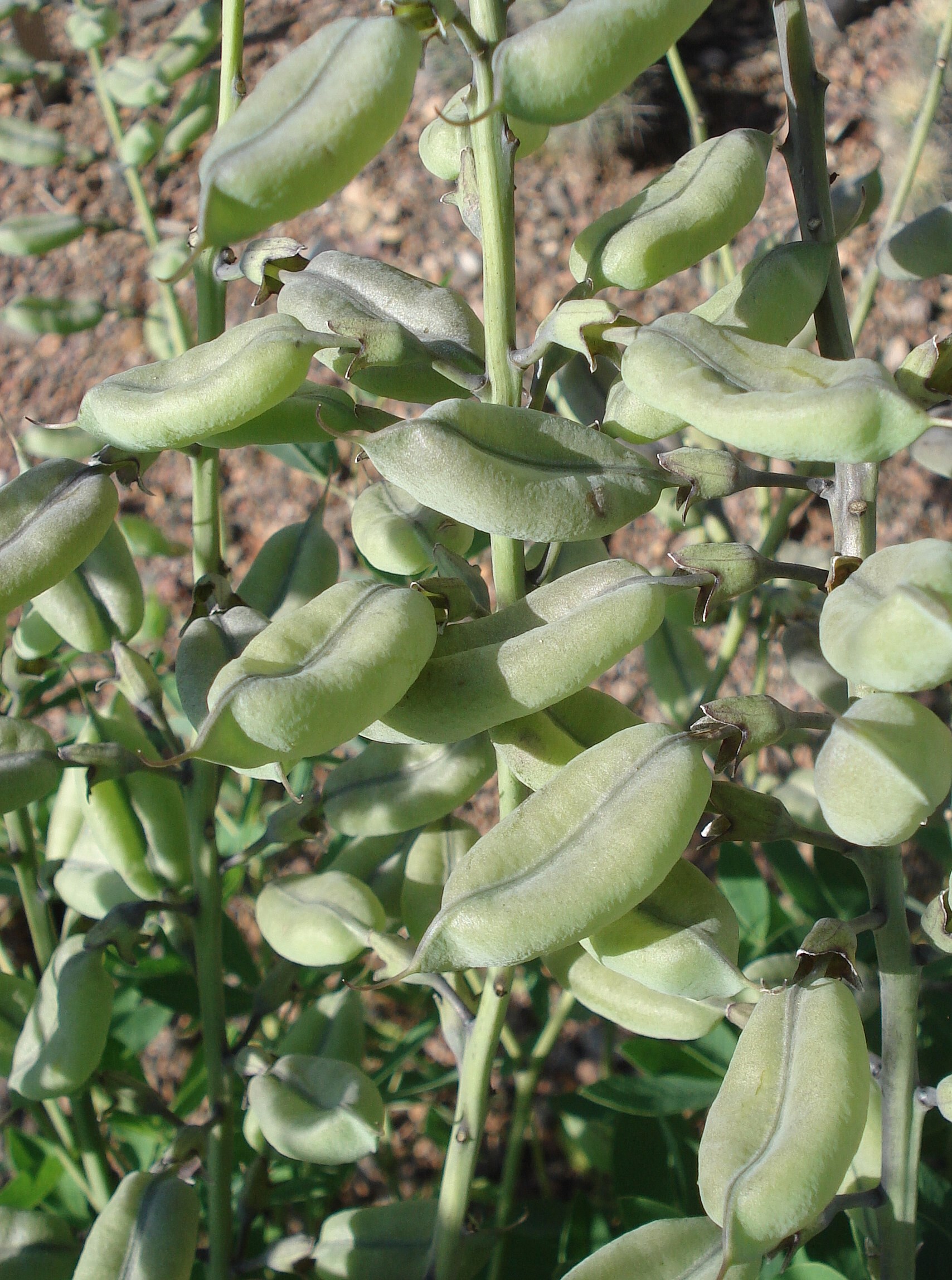 Bis 120 cm hohe, kahle, bereifte Staude mit unterirdischem Rhizom. Blätter dreiteilig unpaarig gefiedert, Fiederblättchen kurz gestielt, ganzrandig, eiförmig. Blütenstand traubig, mit violettblauen bis hellblauen, 2,5−3 cm großen Schmetterlingsblüten. Fruchthülse 3−7 cm lang, aufgeblasen, kahl. Blütezeit Juni bis Juli.