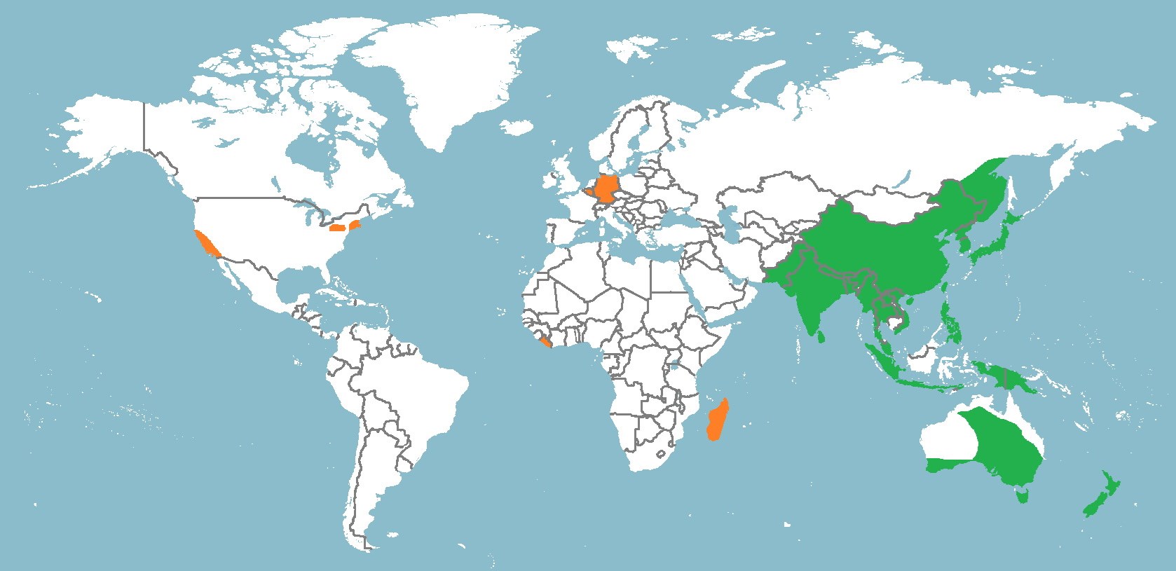Von Indien und Russland bis Neuguinea, Australien und Neuseeland.