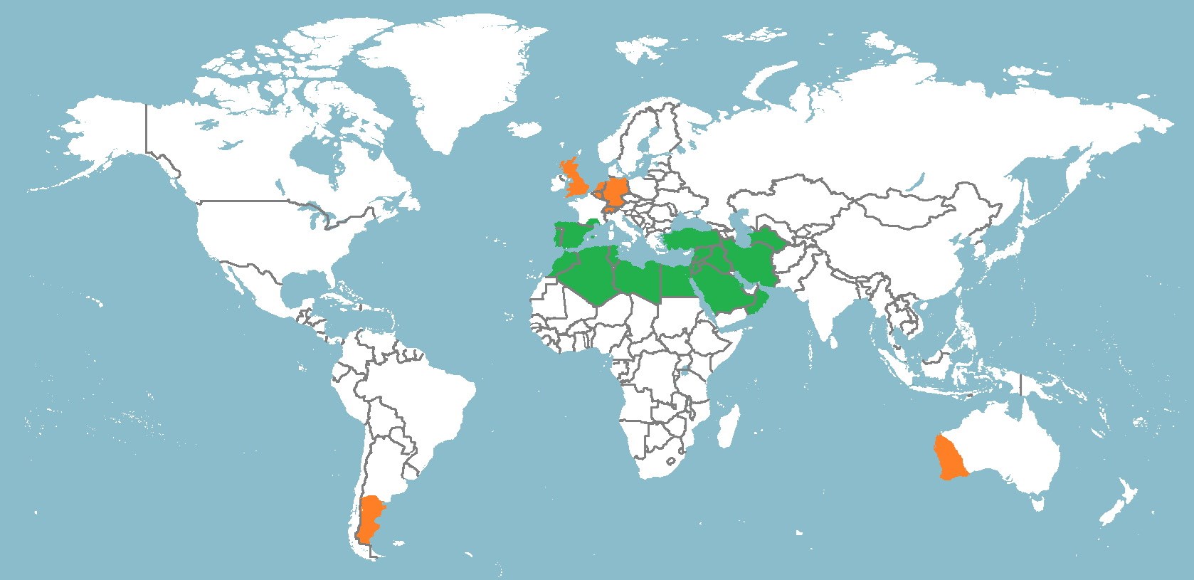 Mittelmeergebiet und Südwest-Asien von Marokko bis Arabien und Turkmenistan.