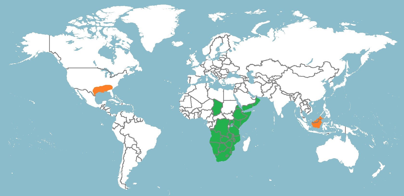 Ost- und Südafrika, südliche Arabische Halbinsel.