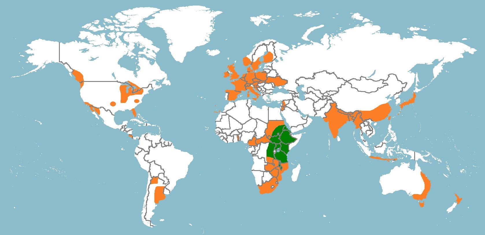 Ostafrikanische Art, vor allem über Vogelfutter und Gründüngung verbreitet. Art mit Ausbreitungstendenz, so zunehmend an Ackerrändern und auf Brachäckern zu finden (BBV 2016), oft auch im Klärsubstrat zusammen mit Tomate, Solanum lycopersicum, Peruanischer Blasenkirsche, Physalis peruviana, und Wassermelone, Citrullus lanatus. Wahrscheinlich häufiger als angegeben, aber oft nicht zur Blüte gelangend und daher übersehen.