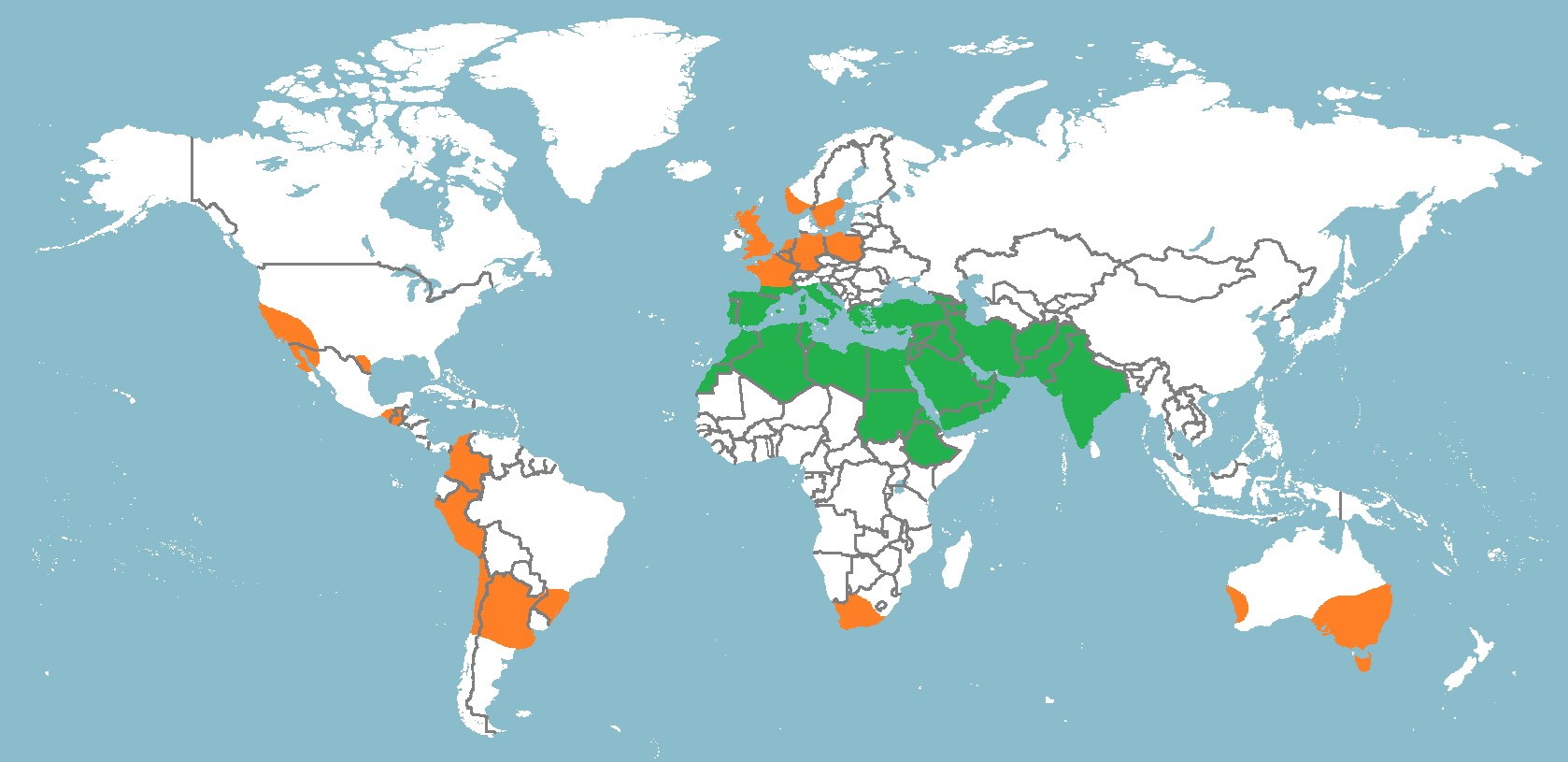 Vom Mittelmeergebiet bis Indien und Ostafrika, gegenwärtig aber vielerorts auch subspontan.