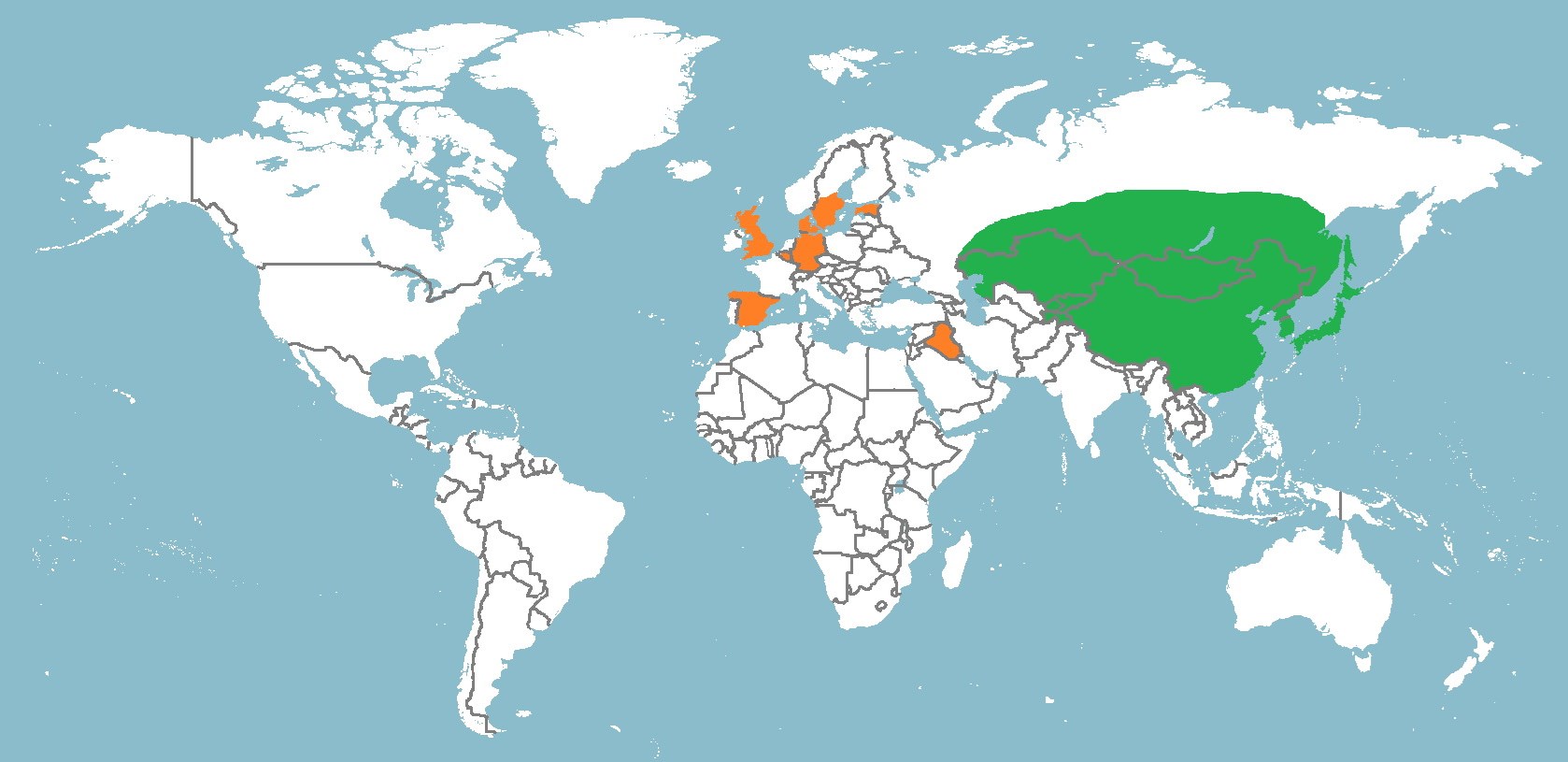 Große Teile Zentral- und Ostasiens.