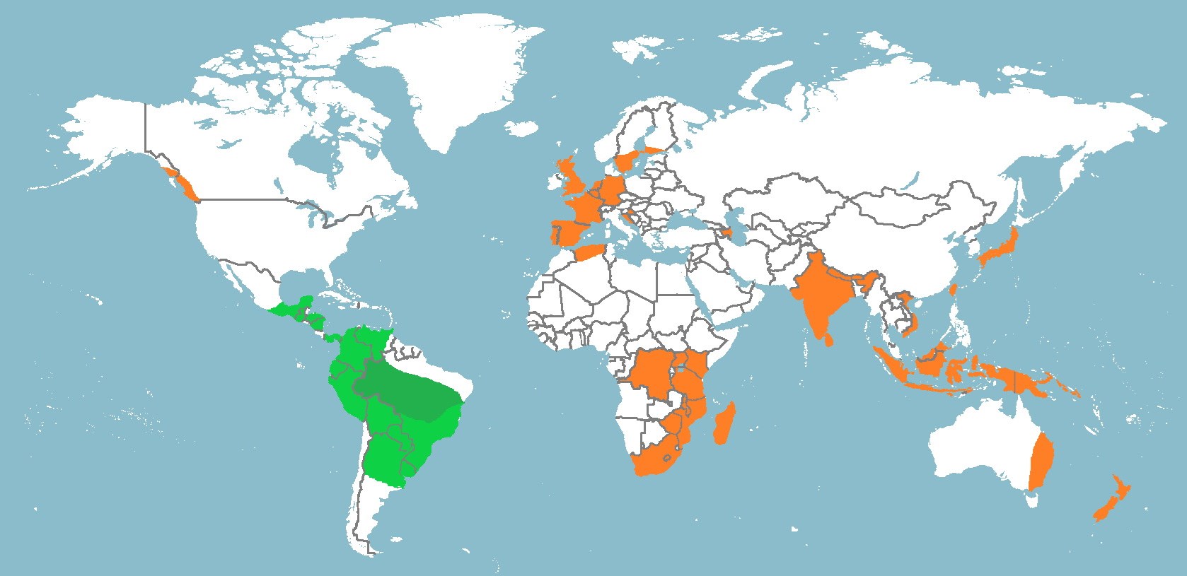 Seebens H., Blackburn T. M., Dyer E. E., Genovesi P., Hulme P. E., Jeschke J. M., Pagad S., Pyšek P., Winter M., Arianoutsou M., Bacher S., Blasius B., Brundu G., Capinha C., Celesti-Grapow L., Dawson W., Dullinger S., Fuentes N., Jäger H., Kartesz J., Kenis M., Kreft H., Kühn I., Lenzner B., Liebhold A., Mosena A. (2017): No saturation in the accumulation of alien species worldwide. Nature Communications 8(2).